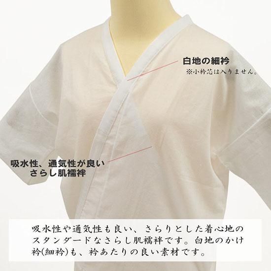 通年で利用できるさらし肌襦袢は、吸水性や通気性も良く、さらりとした着心地で、もっともスタンダードな肌襦袢です。良質の生地を使用していますので、毎回のお洗濯でも長年にわたりご愛用いただけるお品物となっております。