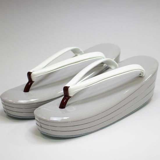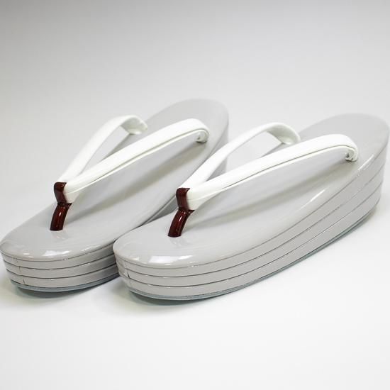 東京浅草製の五分三枚草履です。草履台、鼻緒ともに、シャープな印象となる細身のシルエットは東京スタイル。上品な白鼻緒に、前坪がエンジのツボ変わりの鼻緒を挿げました。上品さのなかに、さりげない小粋さも感じさせてくれる草履です。