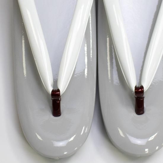 白足袋と細身の白鼻緒は、とても相性が良いおすすめの組み合わせです。足元の統一された白の組み合わせは着物の色を選ばず、コーディネートもしやすく、上品さを感じさせてくれるコーディネートです。また同商品のポイント、チラリと見える坪変わりのエンジの組み合わせは、さりげない小粋さをも感じさせてくれるお品物です。