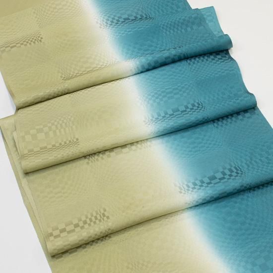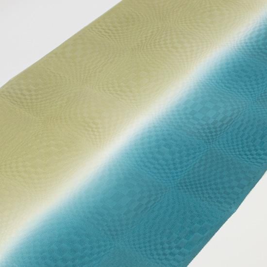 _帯揚げ紋綸子経染め分け/花浅葱×抹茶色