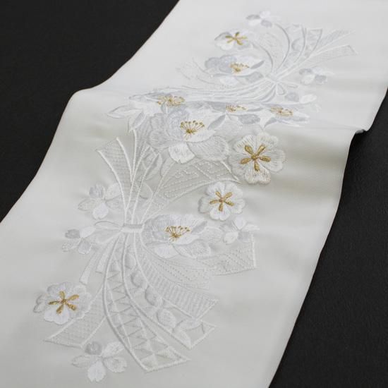 衿元に華やかさ、豪華さ、明るさを与え、顔映りの印象を引き立ててくれる刺繍半衿。白地をベースにした白・金・銀の刺繍を施したものは、フォーマル、セミフォーマルのお着物で活躍してくれます。 こちらは白地に白の刺繍の半衿です。上品さのなかに、しっかりした刺繍でボリューム感があり、襟元に華やかさを加えることができるでしょう。おすすめのお着物は留袖、訪問着、付け下げです。振袖では色物のような華やかさはありませんが、白地の上品さを加えたければおすすめとなります。