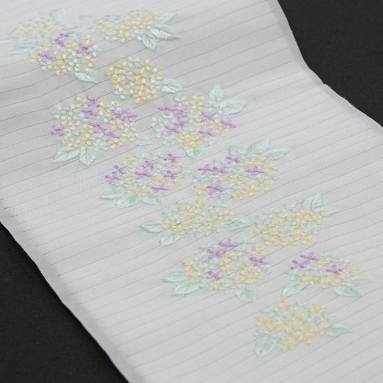 サラリとした涼しげな絽の夏半衿です。顔映りの印象を引き立ててくれるさわやかな刺繍半衿。素材はお手入れもしやすいポリエステルです。気軽に使えるお洒落夏半衿として惜しげなくお楽しみください。