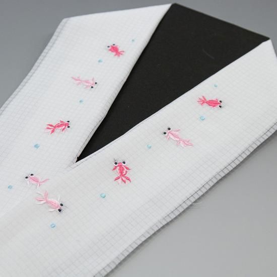 _【夏物】格子絽刺繍半衿(ポリエステル)