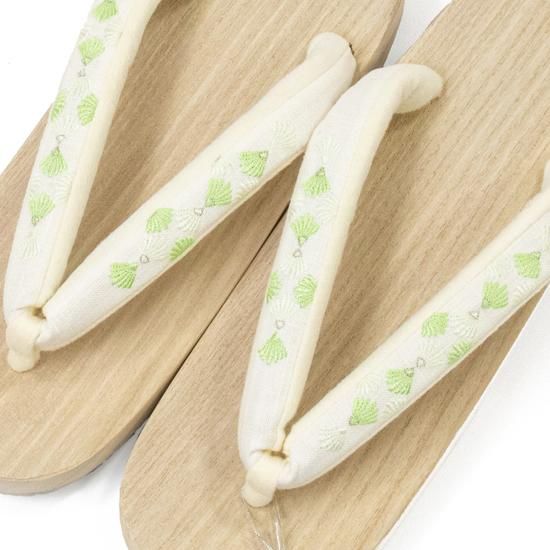 さわやかな麻刺繍鼻緒が上品な白木の桐下駄です。足にやさしい太鼻緒で長時間の着用でも疲れにくい人気の一品です。
