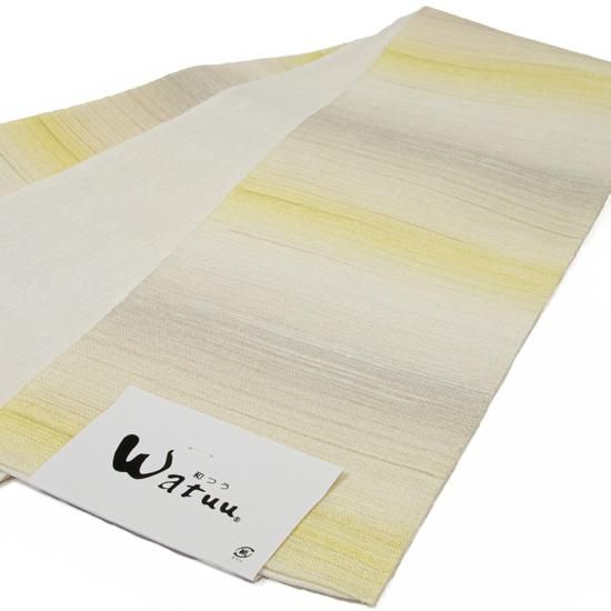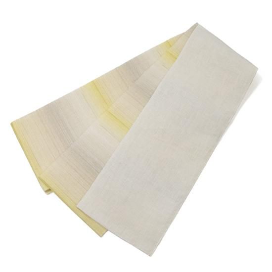 2通り両面で楽しめるグラデーションがきれいな小袋タイプの半巾帯です。麻は、天然繊維のなかで涼しい繊維と言われています。上品で清涼感のある生地は、通気性と吸湿性に優れ、もっとも暑い盛夏の時期にも涼を感じさせてくれる素材です。また浴衣や夏着物でのコーディネートでは、夏素材として麻の涼感を取り入れてみたり、天然素材の高級感あるコーディネートを楽しんでみたりと、素朴でありながら様々なコーディネートを楽しめるおすすめの帯です。