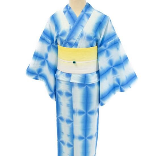 規則的に畳んだ布を板で挟んで締め染め上げた絞り浴衣です。日本の伝統的な染色技法のひとつで、職人が手作業でひとつひとつ丁寧に染め上げています。こだわりの伝統浴衣は上品なデザインで大人の浴衣姿を演出します。