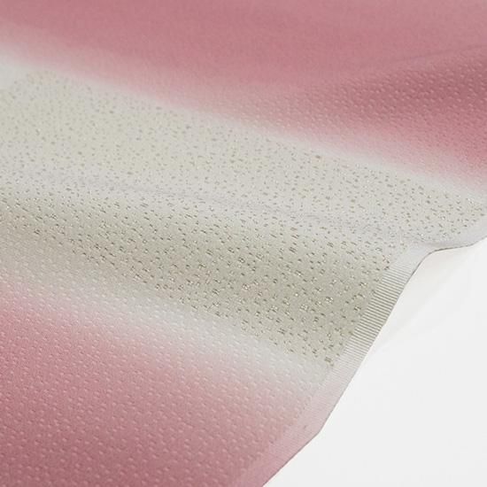 上質な生地にきらきら光る金彩加工に横段ぼかしが魅力の帯揚げです。やわらかなピンクのお色は帯周りをお洒落なアクセントで彩ります。