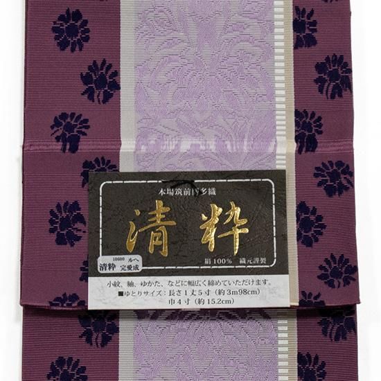 博多織の実力派メーカー大倉織物の人気ブランド誠之助。伝統に培われた洗練されたデザインと色彩感覚でワンランク上のコーディネートができる半巾帯です。 絹ならではの風合いと、しなやかな締めごこちの良さが魅力の帯です。ゆかたや木綿、麻きものはもちろん、通年を通して正絹小紋や紬にもご愛用いただきたい一品です。