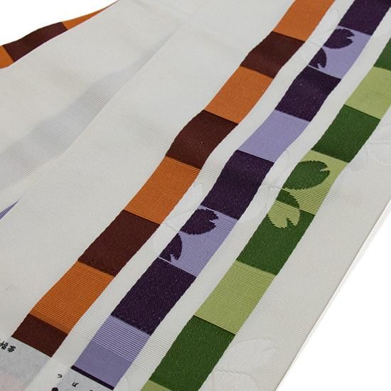 徹底した品質管理のもと確かな技術で製造された帯のみに貼られる「二口」の商標は品質の証です。こちらは織元脇山公詞で作られた半巾帯です。 絹ならではの風合いと、しなやかな締めごこちの良さが魅力の帯です。ゆかたや木綿、麻きものはもちろん、通年を通して正絹小紋や紬にもご愛用いただきたい一品です。