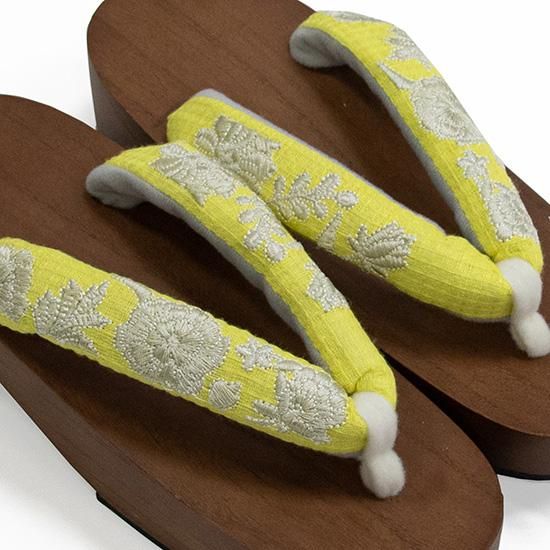 _更紗ワッフル 刺繍鼻緒 ゆかた下駄(フリーサイズ)