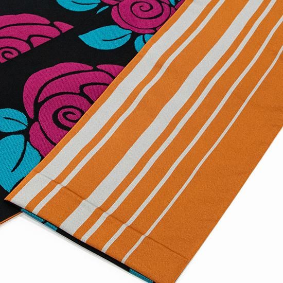 2通り両面で楽しめるリバーシブルの小袋タイプ帯です。浴衣はもちろん、夏の麻着物や木綿きものなど幅広く大活躍してくれる半幅帯です。