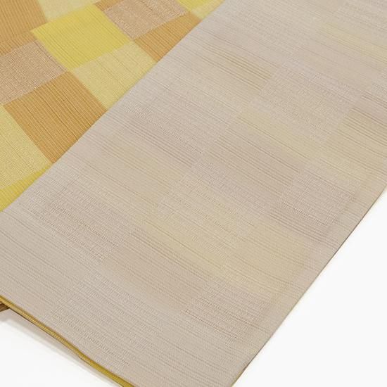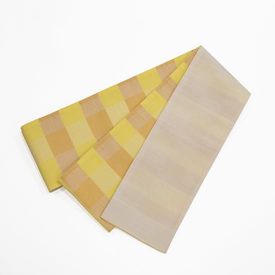 織物の町 桐生で織られた小袋半幅帯です。2通り両面で楽しめるリバーシブルタイプで、浴衣はもちろん、夏の麻着物や木綿きものなど幅広く大活躍してくれる半幅帯です。
