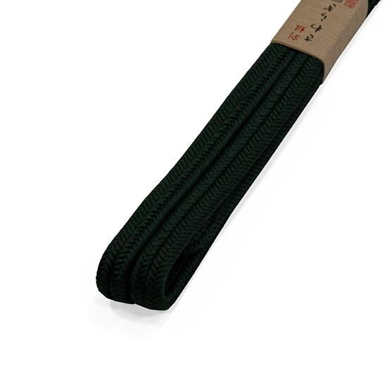 シンプルな単色のお色が使いやすい冠(ゆるぎ)組み帯締めです。こちらは和装小物では定評のある京都 襟の衿秀のさわらぎ冠帯締め撚房です。打ち込みが良くしっかりと組まれた帯締めは、締め心地も良く帯周りを彩ります。