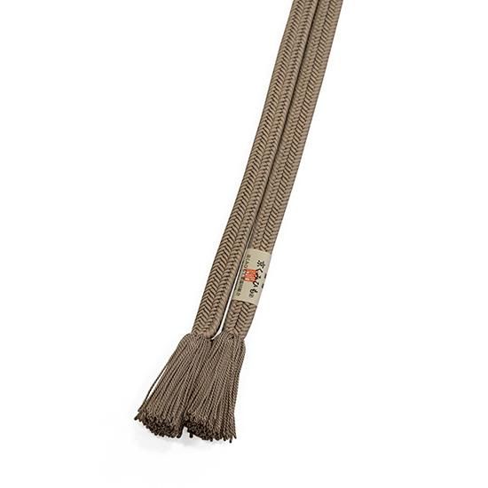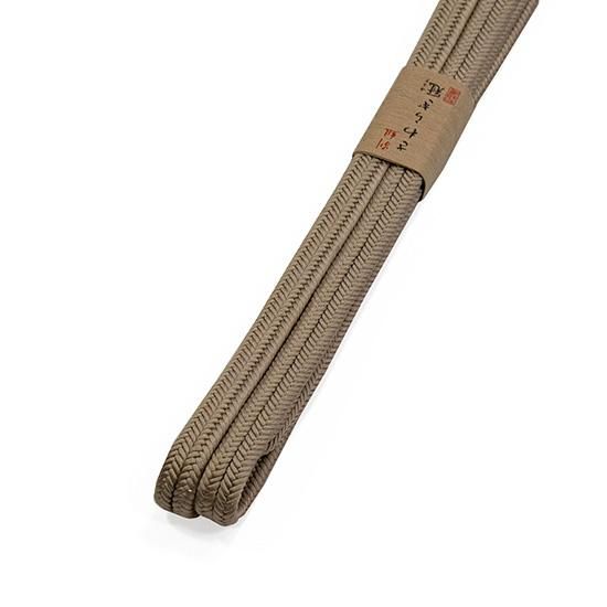 シンプルな単色のお色が使いやすい冠(ゆるぎ)組み帯締めです。こちらは和装小物では定評のある京都 襟の衿秀のさわらぎ冠帯締め撚房です。打ち込みが良くしっかりと組まれた帯締めは、締め心地も良く帯周りを彩ります。