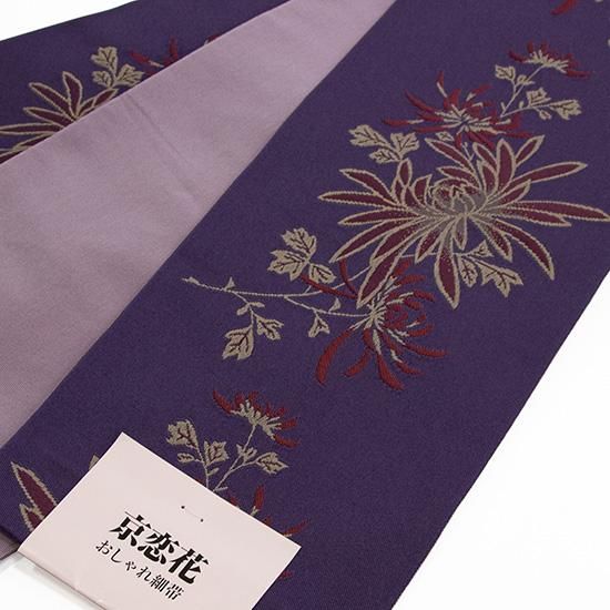 おしゃれ細帯「京恋花」の半幅帯です!両面2通りで楽しめるリバーシブルの小袋タイプ帯です。浴衣はもちろん、夏の麻着物や木綿きものなど幅広く大活躍してくれる半幅帯です。