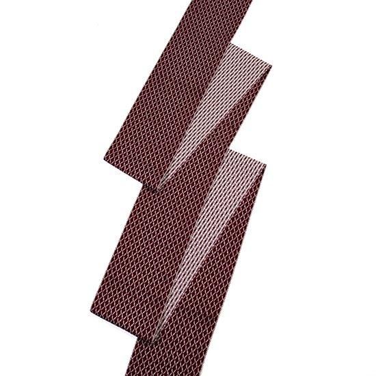 上杉の城下町山形県米沢で織られた近賢織物の北斗七星四寸単帯です。紬糸に和紙を織り込んだ、ざっくりとした独特な風合いの帯です。裏表両面ともお使いいただけますし、端のフリンジ(房飾り)をいかした帯結びも素敵です。絹の小紋や紬はもちろん、ポリエステル、木綿、麻きものなど幅広く活躍してくれる半幅帯です。