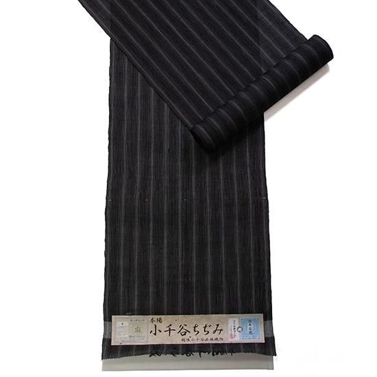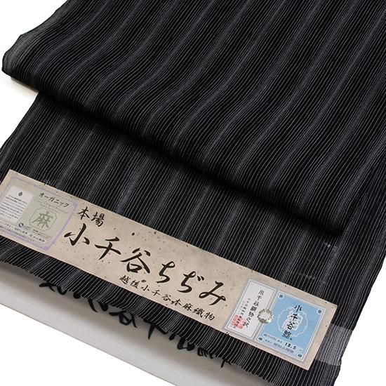 麻の清涼感とさらさら感が魅力の小千谷縮の反物です。小千谷縮は、江戸時代初期に誕生した縮布独特の生地で、細い緯糸に強い撚りをかけることで布面に細かいシボを持ちます。当時の手法を守り、一反一反を手で湯もみしてシボ出しをしています。天然繊維の麻が持つ爽やかな肌ざわりと、縮布の清涼感が魅力で、夏のお出かけに最適なお召しものです。夏八寸帯や麻帯、半幅帯などを合わせて、盛夏のきものとしてお楽しみください。