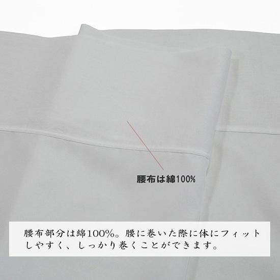 フォーマルからカジュアルまで幅広くお使いいただける白地の腰巻式裾除けです。腰部分はやさしい綿素材を使用し、裾は裾さばきの良いポリエステル素材です。ご自宅でのお手入れも簡単で、気軽にお使いいただけるアイテムです。快適な着物ライフをお楽しみください。