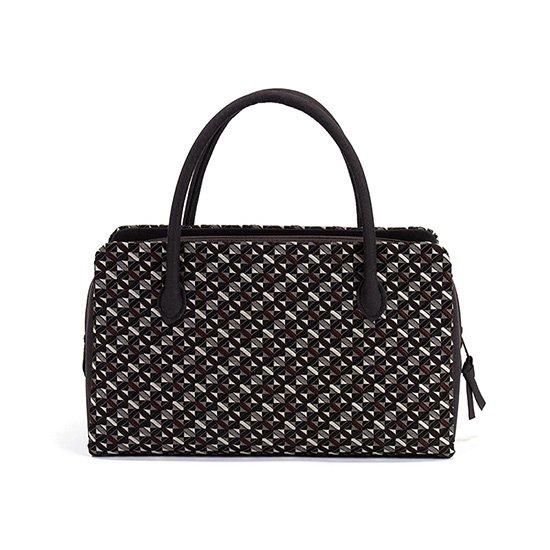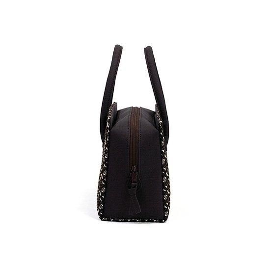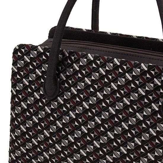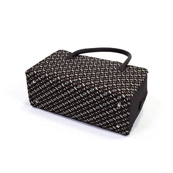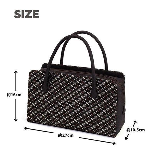 お茶席からカジュアルなシーンまで幅広く活躍する、博多織帯地を使用したお洒落で上品なデザインの利休バッグです。お茶席やよそ行きとしてのお出掛けでの色無地や小紋はもちろん、パーティーや式典などでのお召になれるドレッシーな訪問着、付け下げなどにも相性は抜群です。また天チャックタイプのバッグ口は大きく開き、中には長財布から小物まで収納可能で、バッグのサイズ感は大きすぎず小さすぎず、デザイン性と実用性を兼ね備えたサイズです。博多織の洗練されたデザインは、幅広いコーディネートにも違和感なく溶け込み、特別な日のおしゃれをさらに華やかに彩ります♪
