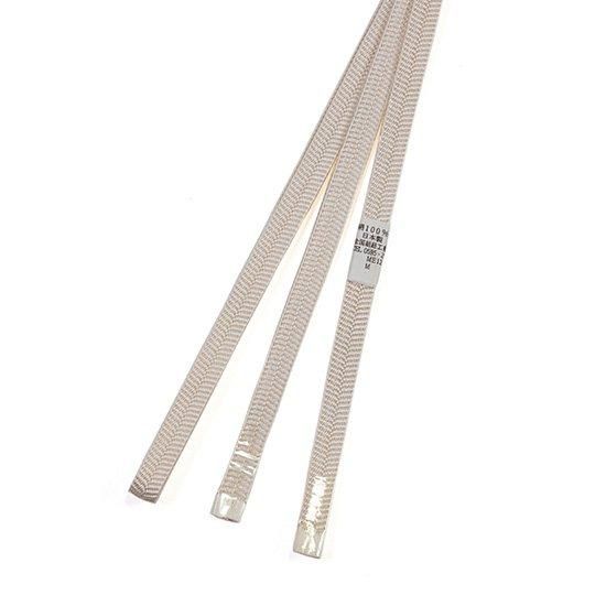 正絹三分紐は、おしゃれな着こなしに欠かせないアイテムです。三分幅で使用できる帯留めに通すことができ、自分好みの紐を選んで、街着や紬などのカジュアルな着物からフォーマルなシーンまでお楽しみいただけます。この正絹三分紐は、正絹100%素材で作られており、締め心地が非常に良く、しっかりと締まります。また、絹特有のしなやかな風合いがあり、着物に上品な光沢感を与えます。おしゃれな装いを引き立てる一品です。