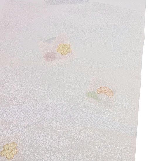 和装小物では定評のある「襟の衿秀」から、洗練された美しさが際立つ『帯揚げローケツ縫取色紙』をご紹介します。しっかりとした丹後ちりめん地を使用し、その風合いは、手に取った瞬間に感じられる高級感と柔らかさを備えています。地紋には優雅な横段道長模様が施され、日本の四季を象徴する松、竹、梅、桜、紅葉が美しい色紙柄として散りばめられたデザインは、見る人を惹きつける魅力にあふれています。その上品で優しい色合いは、セミフォーマルからカジュアルな場面まで、特に染めの着物と相性が良く、さまざまなシーンで活躍するお品です。訪問着、付け下げ、色無地、小紋まで幅広い着物に合わせてお使いください。
